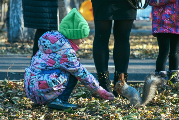 Одним из самых популярных развлечений у местных жителей в это время года является кормление белок.