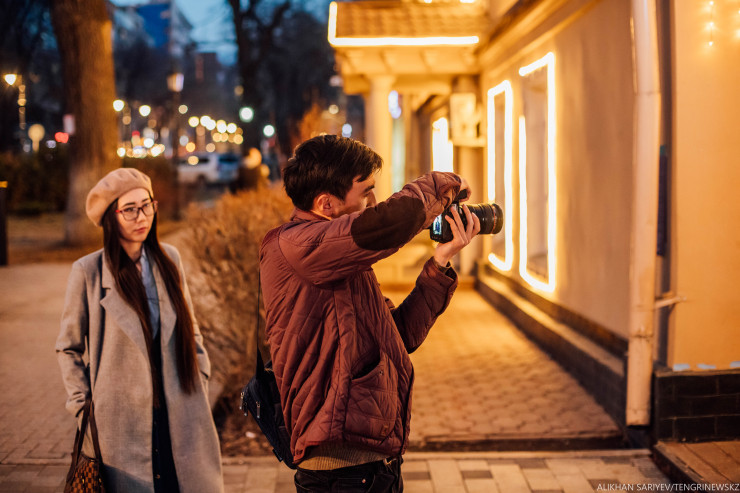 "Мы здесь просто кайфуем, - говорит их коллега Бахытбек, - дарим людям улыбку. Я сюда пришел, когда карантин начался, из-за того, что лишился работы. Получил от государства 42 500, взял фотоаппарат и вышел сюда.