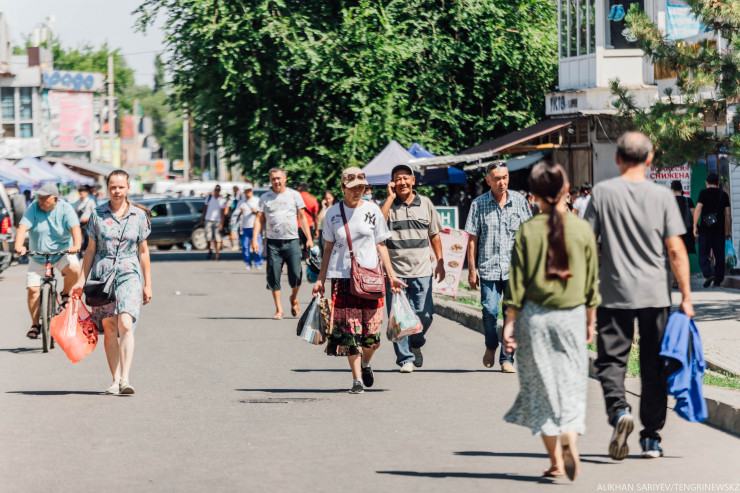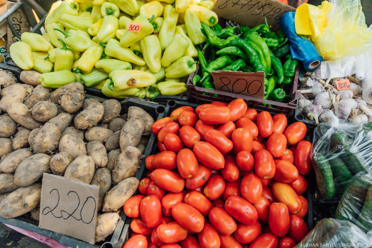 Из самого тихого места днем мы перебазируемся в самое шумное - местный базар. Интересуемся, сколько стоит тут транспорт. На автобусе - 120 тенге, а вот таксисты, не моргнув глазом, предлагают отвезти за тысячу.