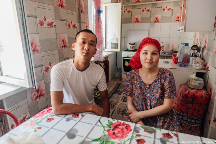 Стучимся в квартиру, где жил будущий музыкант. Сейчас здесь живет молодая пара Жандос и Гульмарал. Они радушно пригласили нас зайти. Говорят, что знают историю этой квартиры и сами очень любят творчество Батыра.