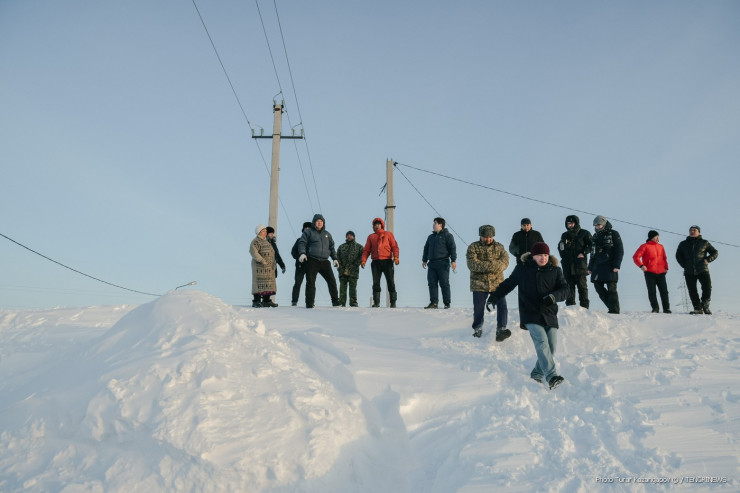 Мы прощались с местными жителями, они еще долго смотрели нам вслед, стоя на вершине снежной горы, которая соединяет крыши их домов.