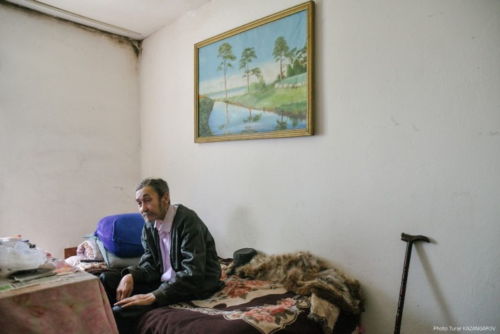 "Я Орынбек Балапанович Султанов. Родился в 1957 году. Живу здесь уже полтора года. Был дважды женат. Первая жена умерла. Вторая жена отказалась от меня, она была моложе меня. Потом я начал скитаться в одиночку, с квартиры на квартиру, жил в разных местах, везде условия разные, а тут нравится, неплохо, никто не беспокоит. Получаю пенсию по инвалидности, у меня вторая группа", - говорит Орынбек.