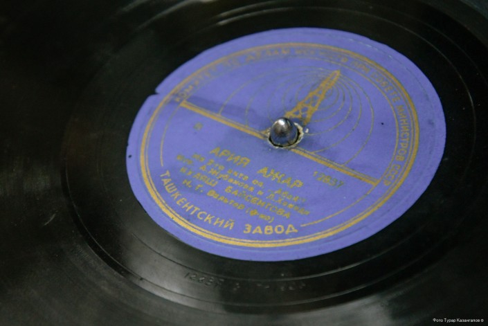 Шафер садится поудобнее и с большим удовольствием слушает на патефоне запись с голосом Куляш Байсеитовой. "Ария Ажар из оперы Жубанова "Абай". Пластинка 40-х годов", - уточняет для нас пенсионер. По комнате разносится звонкий женский голос с характерным патефонным шуршанием. "Пластинки хранят звук вечно", - скажет Наум Григорьевич после прослушивания.