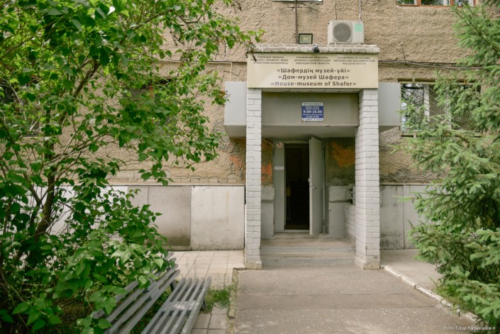 Этот музей пластинок одновременно является и домом Шафера. Чтобы оказаться в квартире, ему достаточно открыть эту дверь. "Вся коллекция завещана Казахстану, но просто я здесь живу, потому что с ней работаю, и пока еще есть силы, служу в этом музее как работник", - отмечает он.