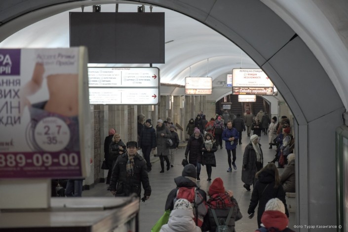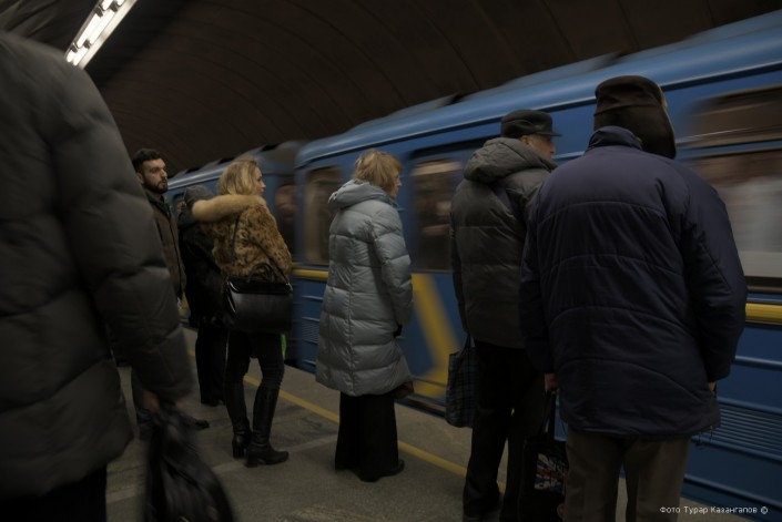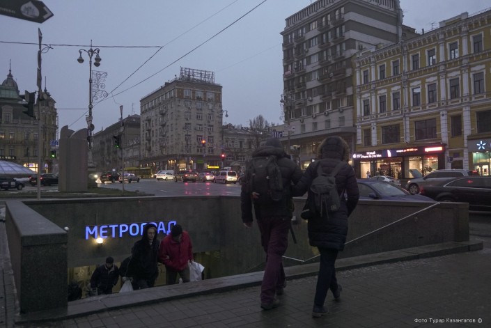 В Киеве темнеет рано, и чтобы успеть до сумерек снять как можно больше материала, по рекомендации местных, спускаемся в метро.