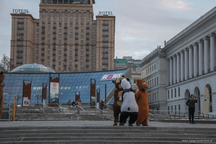 А перед монументом независимости Украины гражданские лица предлагают всем желающим сфотографироваться с голубями и обезьянками.