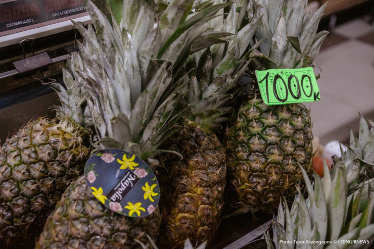 Ананасы - в среднем 1000 тенге за килограмм.