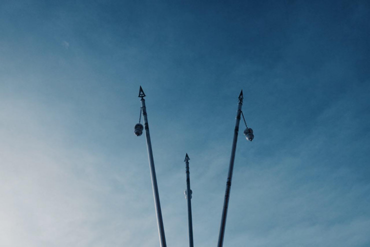 Мы подходим к мавзолею. Саммидин обращает мое внимание на макеты гигантских копий, установленные при входе.