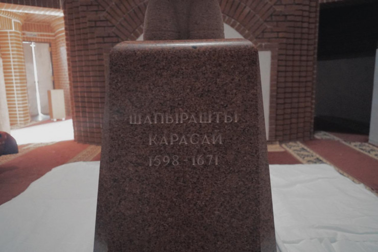 "Здесь похоронен великий батыр Карасай", - произносит Самиддин, входя внутрь мавзолея. На камне годы жизни: 1598 - 1671.