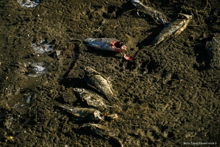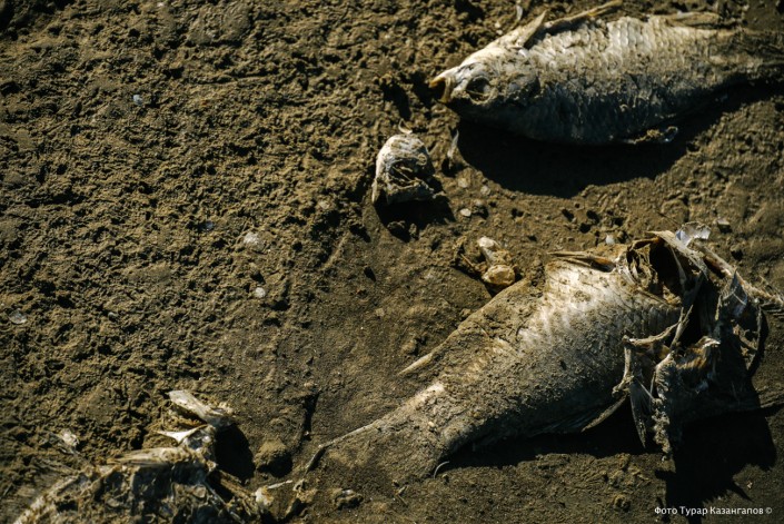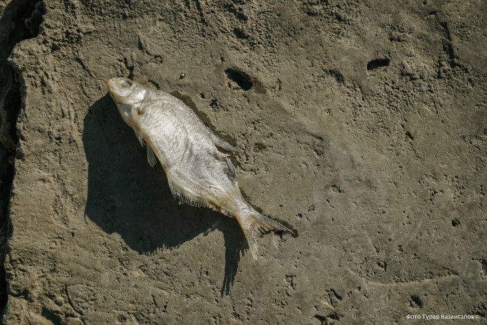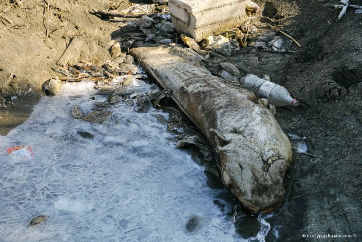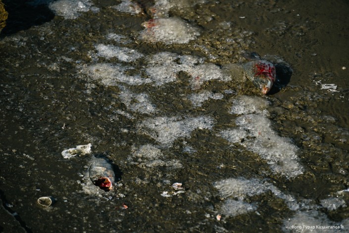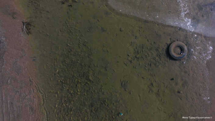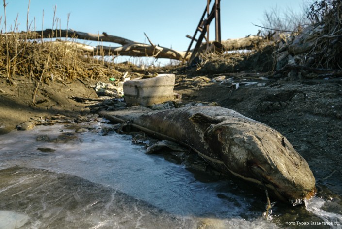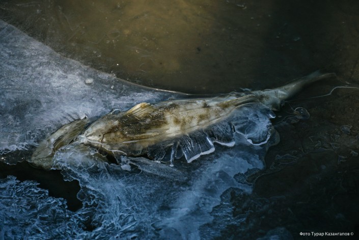 "Эта рыба осталась подо льдом на мелководье, она не успела уйти вглубь", - предполагает Бостан Сулейменов.