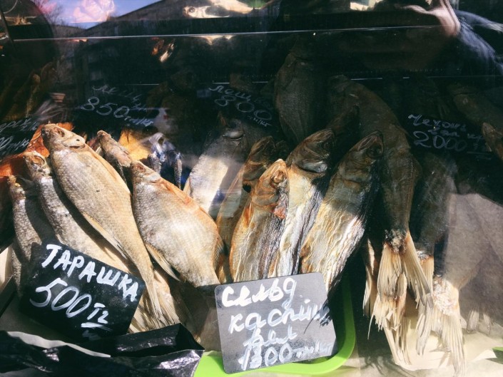 Продавец, слушая наш диалог, добавила: "Это не местная рыба, а из Астрахани".