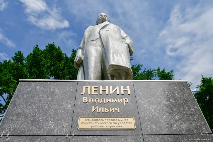 На первый взгляд ничего особенного - скульптуры Владимиру Ильичу до сих пор стоят и во многих казахстанских поселках. Но примечательное здесь не сама фигура, а надпись.