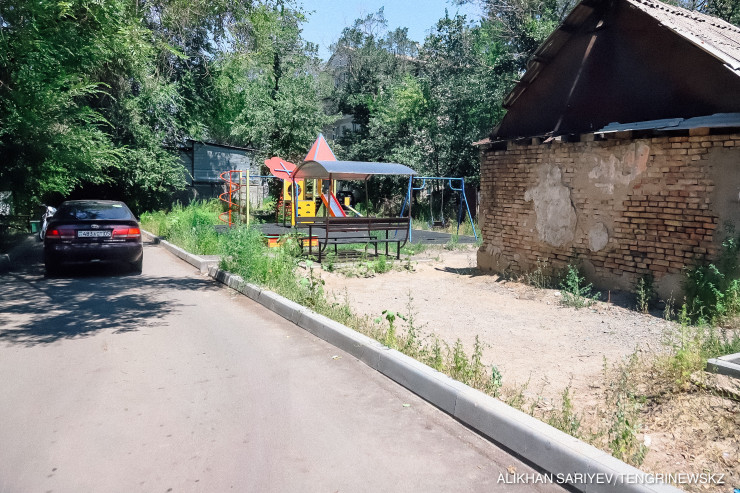 Местные жители, узнав, что мы журналисты, попросили озвучить их просьбу: установить во дворе "лежачих полицейских", поскольку сюда с оживленной улицы Рыскулова часто заезжают машины.