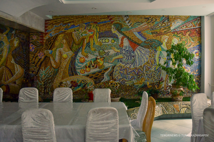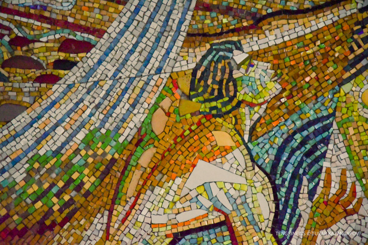"Материал, из которого выполнена мозаика, называется смальта. Это художественное стекло, его отливают и раскалывают на небольшие фрагменты. В советское время были специальные заводы, которые занимались изготовлением этого материала. Сейчас подобных предприятий практически не осталось на территории бывшего СССР. В наши дни такие работы стоили бы очень дорого", - объясняет Темиртас.
