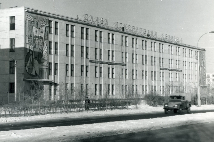 В здании, где сейчас "Казпочта", раньше был Целиноградский главпочтамт. В наши дни из-за облицовки уже и не скажешь, что оно было построено больше полувека назад. Напоминает об этом разве что табличка, приваренная к ржавой раме для баннера. На ней и указан год постройки - 1966-й.