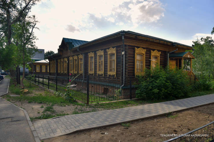 Пройдя к улице Отырар, можно заметить два одноэтажных здания, построенных из сруба дерева.