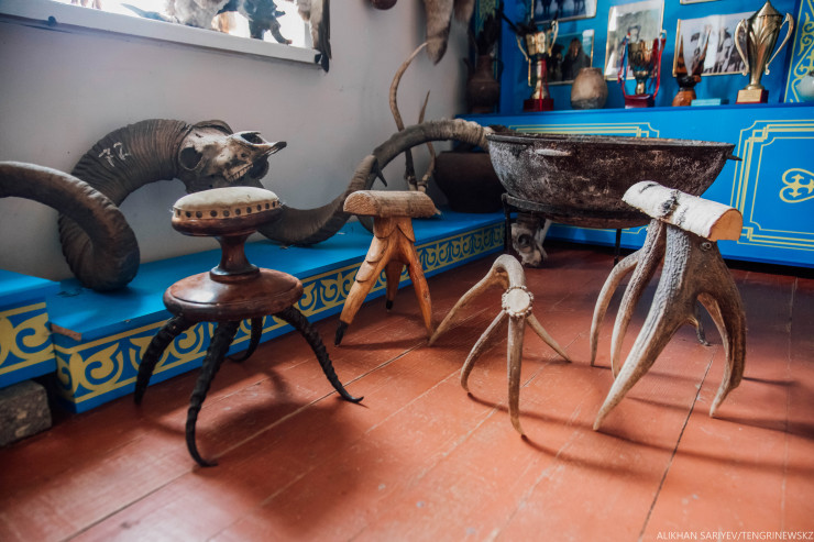 Есть у нас свой музей, где мы храним экспонаты для беркутчи и разные уникальные находки, он единственный в Казахстане. Какие-то мы находим в наших горах, пещерах, какие-то гости приносят. Дарят знакомые, у кого отцы когда-то работали с беркутами, собаками. Историки часто здесь бывают, фотографируют все, а потом исчезают: себе, наверное, пишут диссертации. Ни один экспонат мы не продаем, потому что это история наших предков.