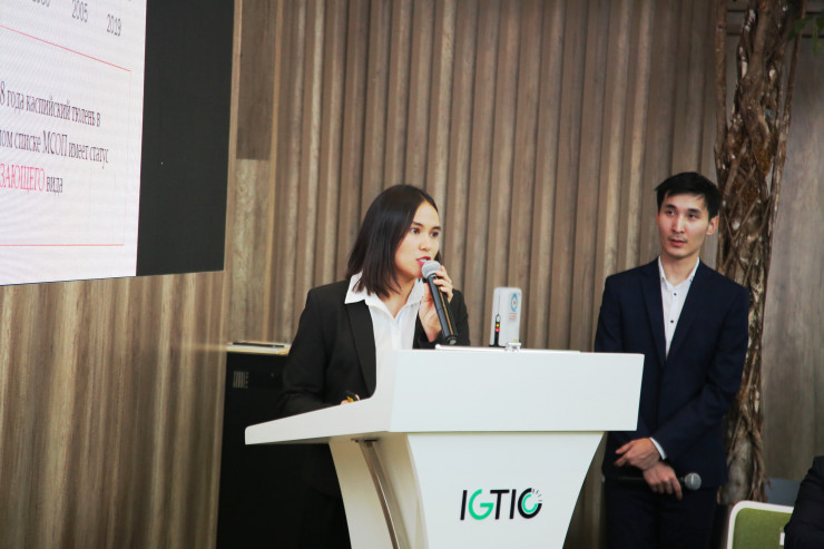 Большой интерес у собравшихся вызвал доклад специалиста по экологическому просвещению Асель Баймукановой. Девушка рассказала о серьезной проблеме вымирания каспийского тюленя. По ее данным, с 2008 года это животное имеет статус исчезающего вида. Большую угрозу популяции каспийского тюленя и осетровым видам рыб представляют сети из синтетической мононити и крупноячеистые сети.