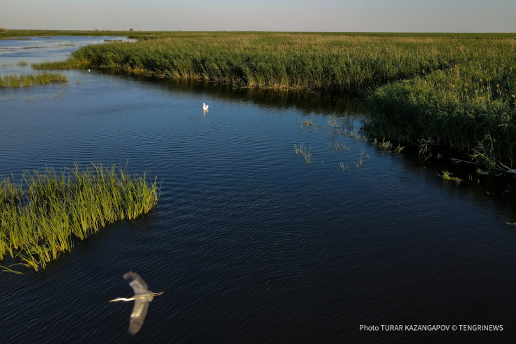 Пески и выжженные земли сменили зеленые оазисы, поля и много-много воды. Это Курмангазинский район.