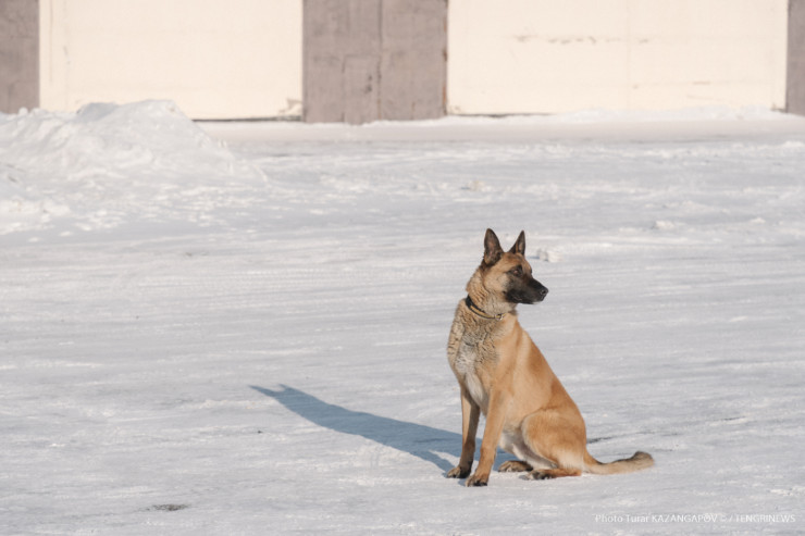 Айк - помесь немецкой и бельгийской овчарки, ему три года. Воспитывает его кинолог Данияр Жусупов.
