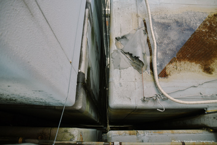 "Большинство капсул нежилые, потому что есть проблема с содержанием асбеста (пыль асбеста считается канцерогенным веществом - прим. автора) и проблема с водой", - поясняет Така, указывая на одну из квартир, которую периодически заливает водой с крыши.