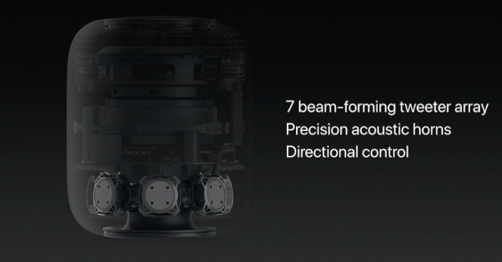 Внутри HomePod семь маленьких динамиков и один большой сабвуфер. В устройстве используется чип A8, как в iPhone.
