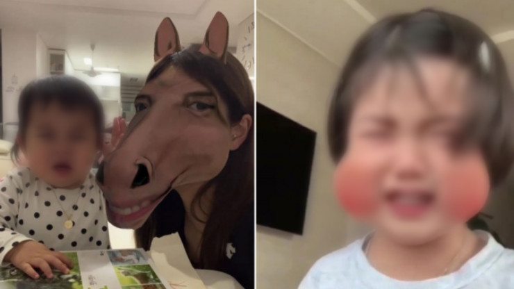 Дети не только ужасаются превращениям родителей, но и не понимают "личных" изменений. Так, в одном из трендов фильтр "тянет щеки и делает их большими", что также вызывает у ребенка истерику и недоумение.