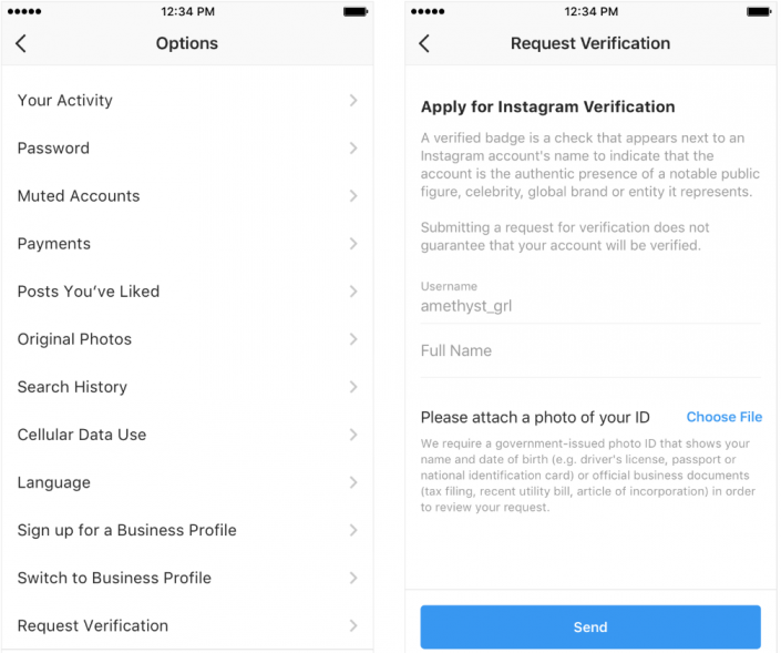 В социальной сети Instagram обновились правила верификации аккаунтов. Теперь, чтобы получить синюю галочку в своем профиле, стоит отметить свое полное имя и прислать фото документов, подтверждающих вашу личность, передает Tengrinews.kz