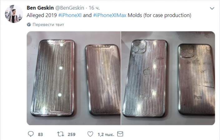 Инсайдер Вениамин Гескин опубликовал в социальной сети Twitter фото макетов, предположительно для новых iPhone XI и iPhone XI Max.