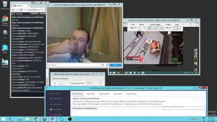 Хакер удаленно включает веб-камеры на устройствах, записывает звук с микрофона и фактически имеет полный доступ к компьютеру. При этом пользователи ничего не подозревают. По некоторым данным, хакер обладает доступом к нескольким сотням компьютеров, большинство которых из России. Но жертв взлома может быть гораздо больше.