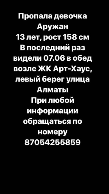 Как сообщили в пресс-службе полиции Астаны, на поиски девочки ориентирован весь личный состав ДВД.