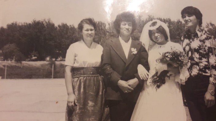 "В 1976 году Канат уехал служить в армию в Московскую область, раз в два месяца мы обменивались письмами, а после его возвращения из армии поженились. Свадьба была сыграна на мой день рождения 25 февраля 1979 года, это было воскресенье. Было около 150 гостей, свадьба проходила в столовой кирпичного завода, где работал Канат", - вспоминает женщина.