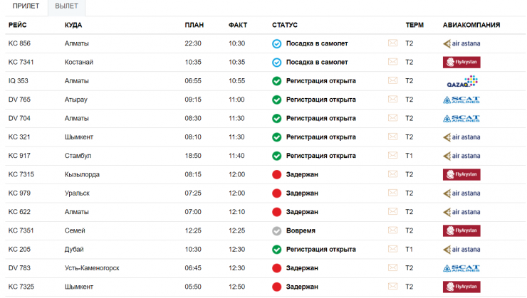 "На данный момент аэропорт работает в штатном режиме, однако есть задержка рейсов. На прилет задерживаются 36 рейсов, на вылет - 28. Отменены 16 рейсов. Причина: метеоусловия в столице и позднее прибытие воздушного судна", - сообщил Шалекенов.