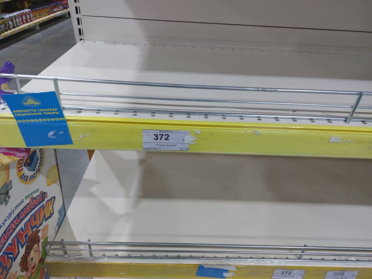 "В крупных супермаркетах выставляют в день лимитированный объем сахара, но люди из-за искусственного ажиотажа скупают это количество", - сообщил официальный представитель управления Мейрам Кабдыгалиев.