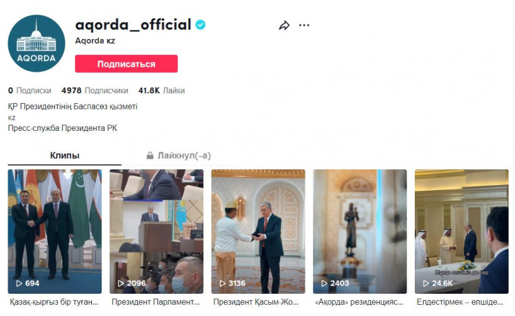 На платформе TikTok появился официальный аккаунт Акорды, передает Tengrinews.kz.