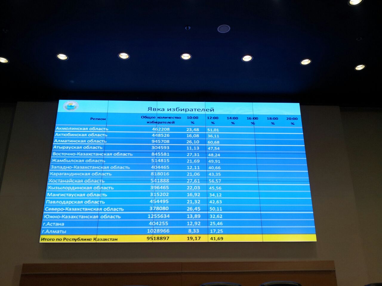 По состоянию на 12 часов по времени Астаны проголосовали 41,69 процента от общего количества избирателей.