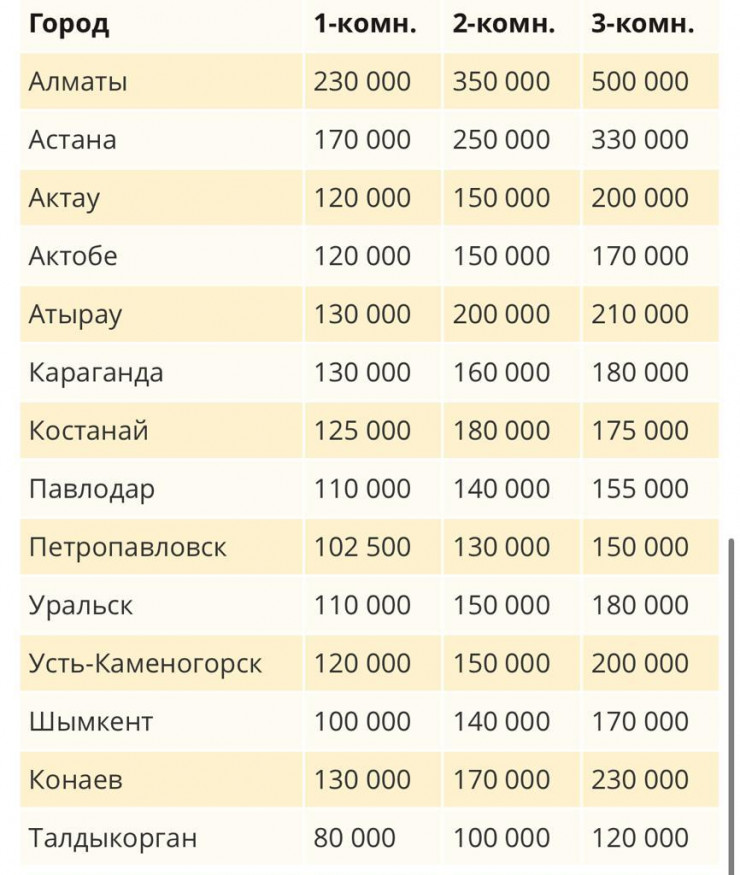 Максимальное снижение произошло в Уральске - на 6,2 процента, до 2 708 тенге за квадратный метр. В Костанае и Петропавловске: на 4,7 процента до 3 174 и 2 600 тенге за квадратный метр. В Алматы съем подешевел на 3,1 процента, до 6 250 тенге за жилой "квадрат", в Астане на 2,5 процента, до 4 062 тенге за квадратный метр.