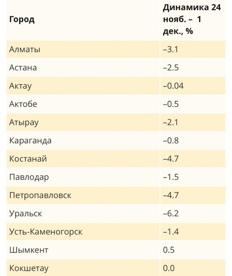 В Караганде, Актобе, Актау, Атырау цены почти пришли в норму, разница с сентябрем составляет не более пяти процентов.