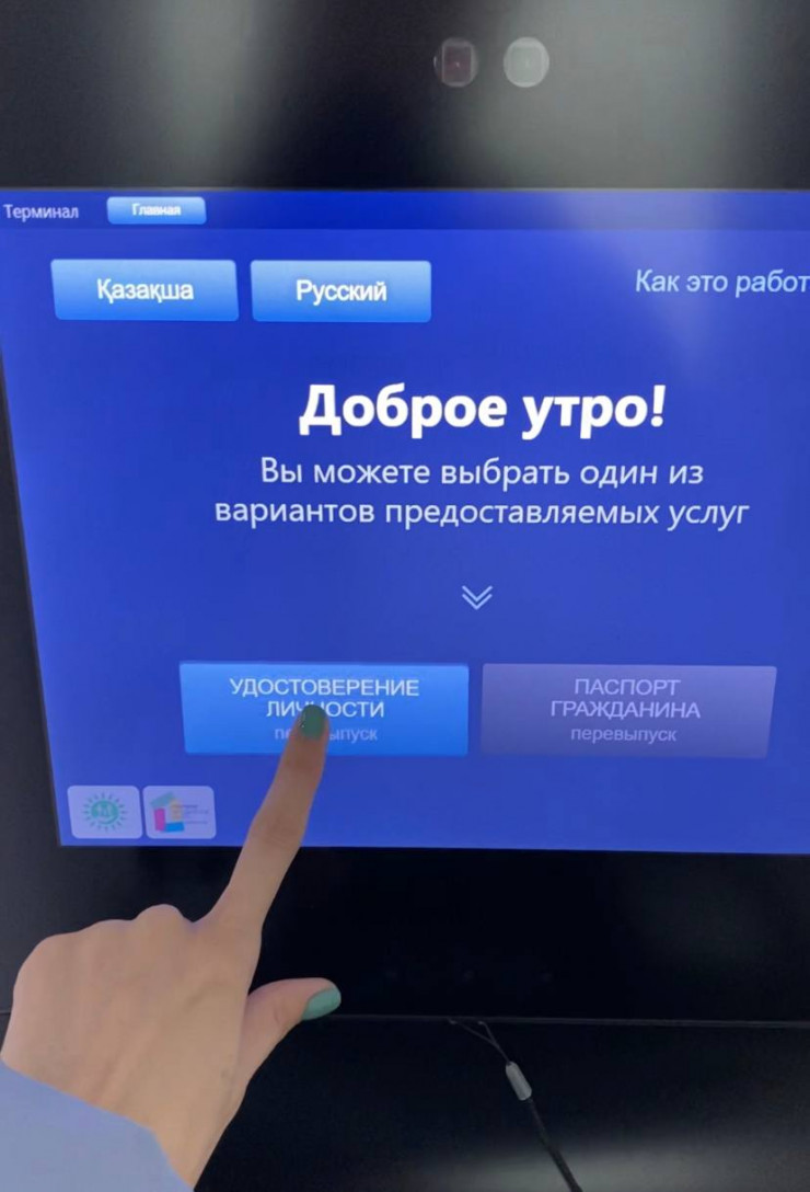3 марта министру цифрового развития, инноваций и аэрокосмической промышленности Багдату Мусину и министру внутренних дел Марату Ахметжанову презентовали новый терминал, с помощью которого каждый казахстанец может выпустить удостоверение личности или паспорт. Им сообщили, что с его помощью клиенты могут заказать услугу, минуя очередь, а также самостоятельно выбрать удачное фото для документа. Сам процесс, по обещаниям госорганов, занимает не более 10 минут.