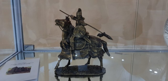 Также в музей была передана статуэтка с изображением воина верхом на лошади от экс-президента Кыргызстана Алмазбека Атамбаева, подаренная в 2015 году. В руках воин держит копье, направленное вниз. Сувенир датируется IX-X веками.