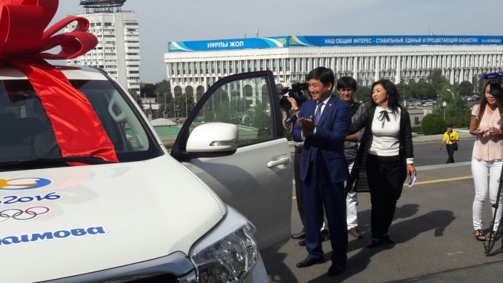Олимпийскому чемпиону Дмитрию Баландину и бронзовой призерке Олимпийских игр Дариге Шакимовой подарили квартиры в Алматы, передает корреспондент Tengrinews.kz. Кроме того, аким Алматы Бауыржан Байбек на встрече с олимпийцами вручил победителям ключи от внедорожников - Баландину Land Cruiser 200, Шакимовой Land Cruiser Prado.