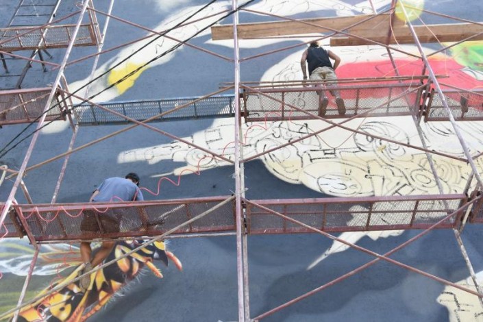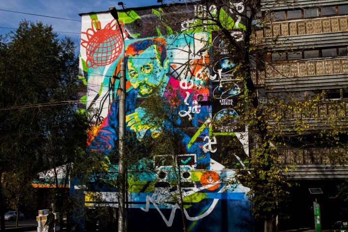 В Алматы в рамках фестиваля Mural Fest художники разрисовали здания и стены многоэтажек гигантскими рисунками - муралами, передает корреспондент Tengrinews.kz. Над проектом работали художники из Казахстана, Украины, России, Малайзии, Сербии и Великобритании.