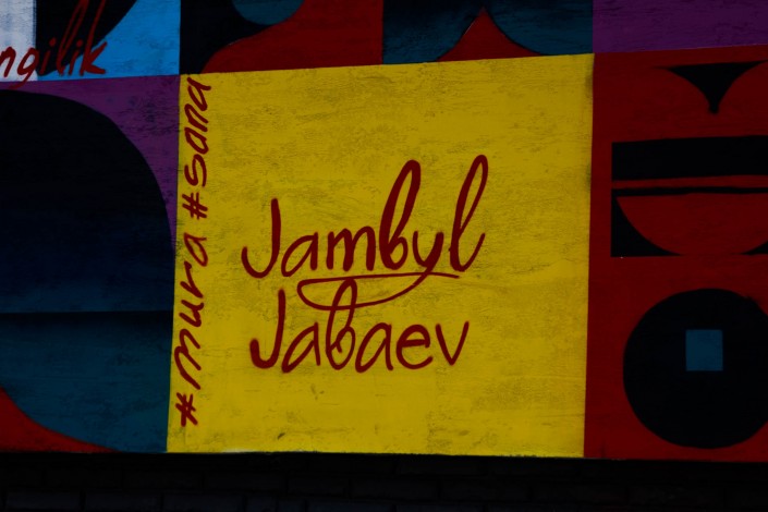 Мурал содержит отрывок из слов назидания Абая и его стих.