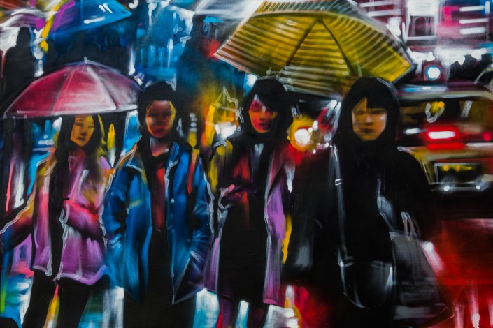 "Главная тема моих работ - городские пейзажи, взятые из повседневной жизни. Я люблю находить красоту в самых обыденных сценах, которые привлекают меня своими взаимоотношениями между цветом, светом, тенью и композицией. Возможно, многие увидят в моей работе здания, напоминающие Нью-Йорк, Токио, Гонконг, но я хотел показать Алматы в будущем. Город растет, здания строятся, люди рождаются, поэтому, возможно, уже в ближайшем будущем Алматы будет выглядеть именно так", - поделился своими мыслями муралист.
