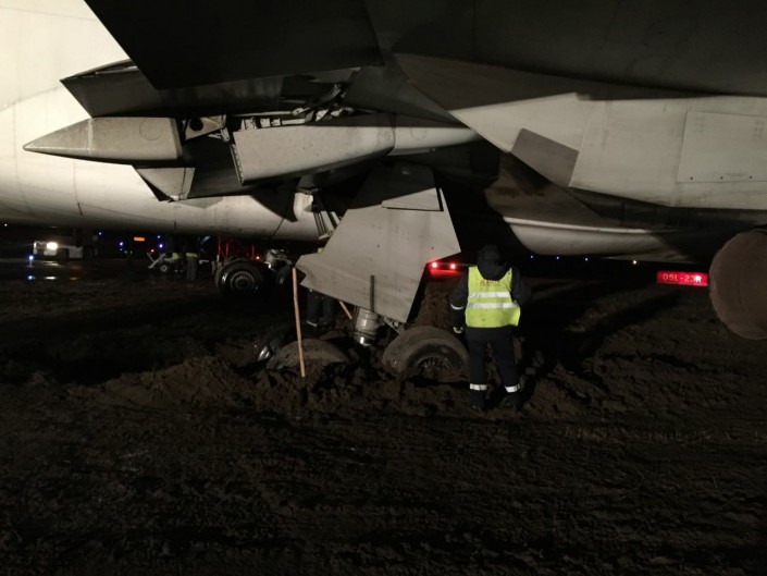 Он также рассказал, что выкатившийся самолет вытаскивали около пяти часов. Для этого было задействовано два тягача, 18 человек, которые откапывали увязшие в грязи шасси лопатами. После этого аэропорт выделил для самолета ангар, где по настоящее время проводятся технические работы с воздушным судном.