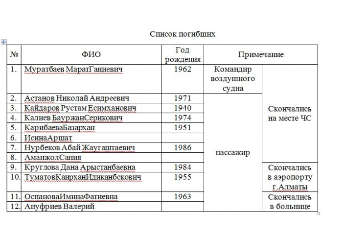 Стоит отметить, что опубликован новый список погибших при крушении самолета Bek Air. В новом списке значатся 12 имен.