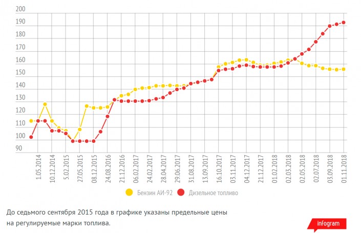 Цена бензина Аи-92 и дизельного топлива в октябре