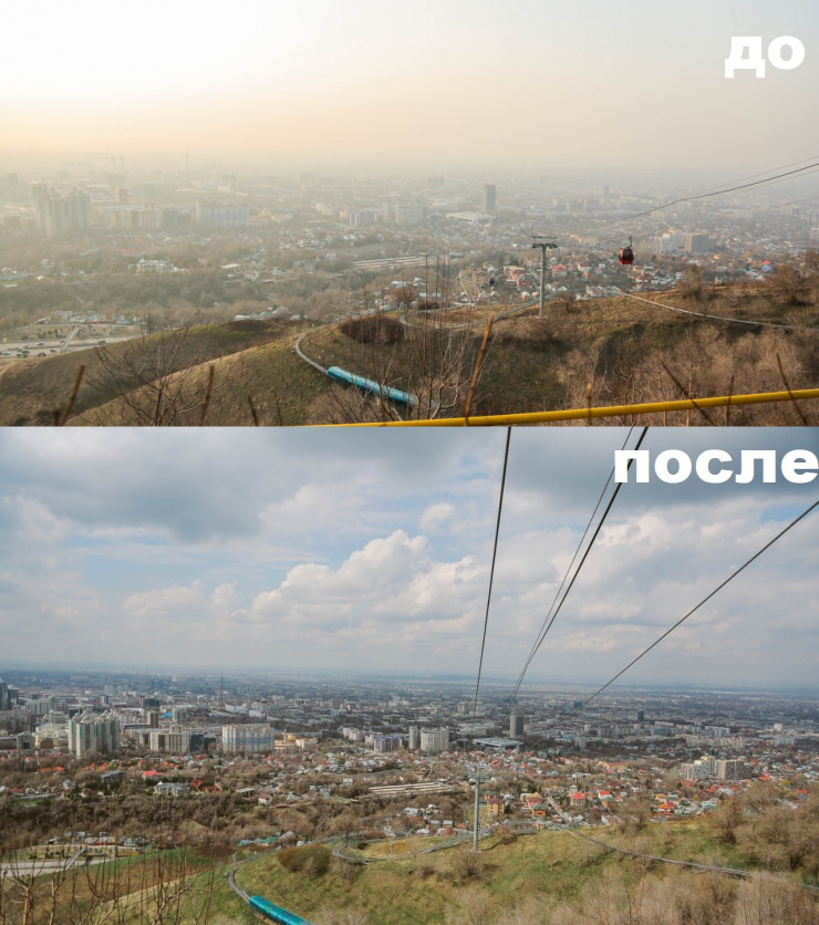 По словам горожан, они давно не наблюдали над мегаполисом такой чистый воздух. Некоторые связывают это с тем, что ранее город покинуло значительное количество иногородних автомобилей. По данным полиции, за последние два-три дня из Алматы выехало свыше 23 тысяч авто.