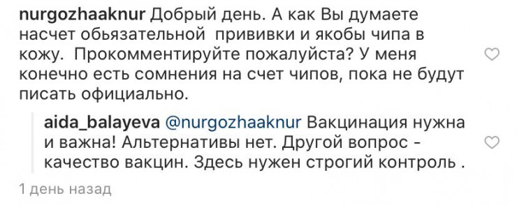 "Вакцинация нужна и важна! Альтернативы нет. Другой вопрос - качество вакцин. Здесь нужен строгий контроль", - ответила Балаева.