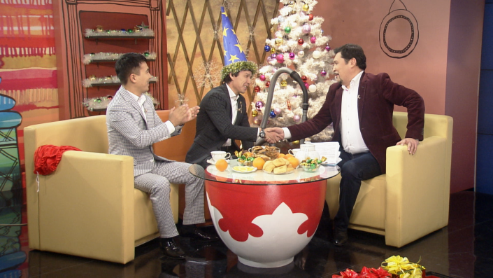 В канун Нового года телеканал покажет праздничный концерт театра сатиры "Шымкент-шоу", который празднует свое десятилетие. Трансляция начнется в 16.00 по столичному времени. В 20.20 начнется концерт памяти Батырхана Шукенова "Батыр Lives", которая продлится вплоть до традиционного поздравления Президента Казахстана Нурсултана Назарбаева. А уже 1 января в 18.40 начнется сольный концерт Кайрата Нуртаса "Мен ғашықпын". Гости вечера - Тимати, Нюша, Индира Елемес, Сергей Лазарев и группа "Рефлекс".